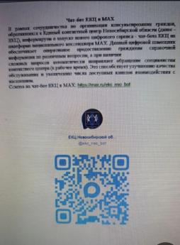 Информируем о запуске нового цифрового сервиса - чат-бота ЕКЦ на платформе национального мессенджера MAX. Данный цифровой помощник обеспечивает оперативное предоставление гражданам справочной информации по различным вопросам
